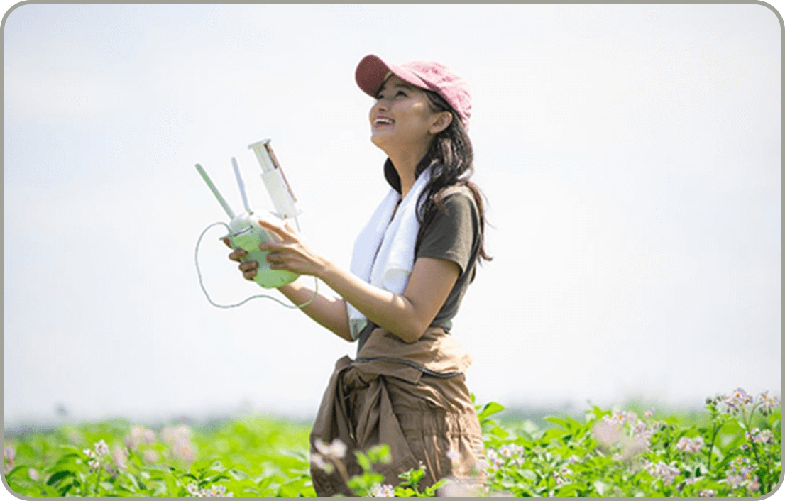 日本の現場でのニーズに合わせて農業専用に開発されたドローンAC101を使用した実践的な講習を行っています。飛行訓練などの実技レッスンをはじめ、法律や安全飛行の基礎知識、さらに農薬や作物保護の専門知識まで、農薬散布作業に必要な知識と技術が学べます。
