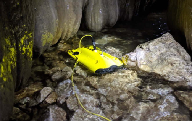 船上や陸上から遠隔操作での撮影をはじめ、水中や海底などの各種点検・調査が、安全かつ低コストで可能に。エンターテイメントや水産業、土木業など多彩な業界で活躍が期待されています。